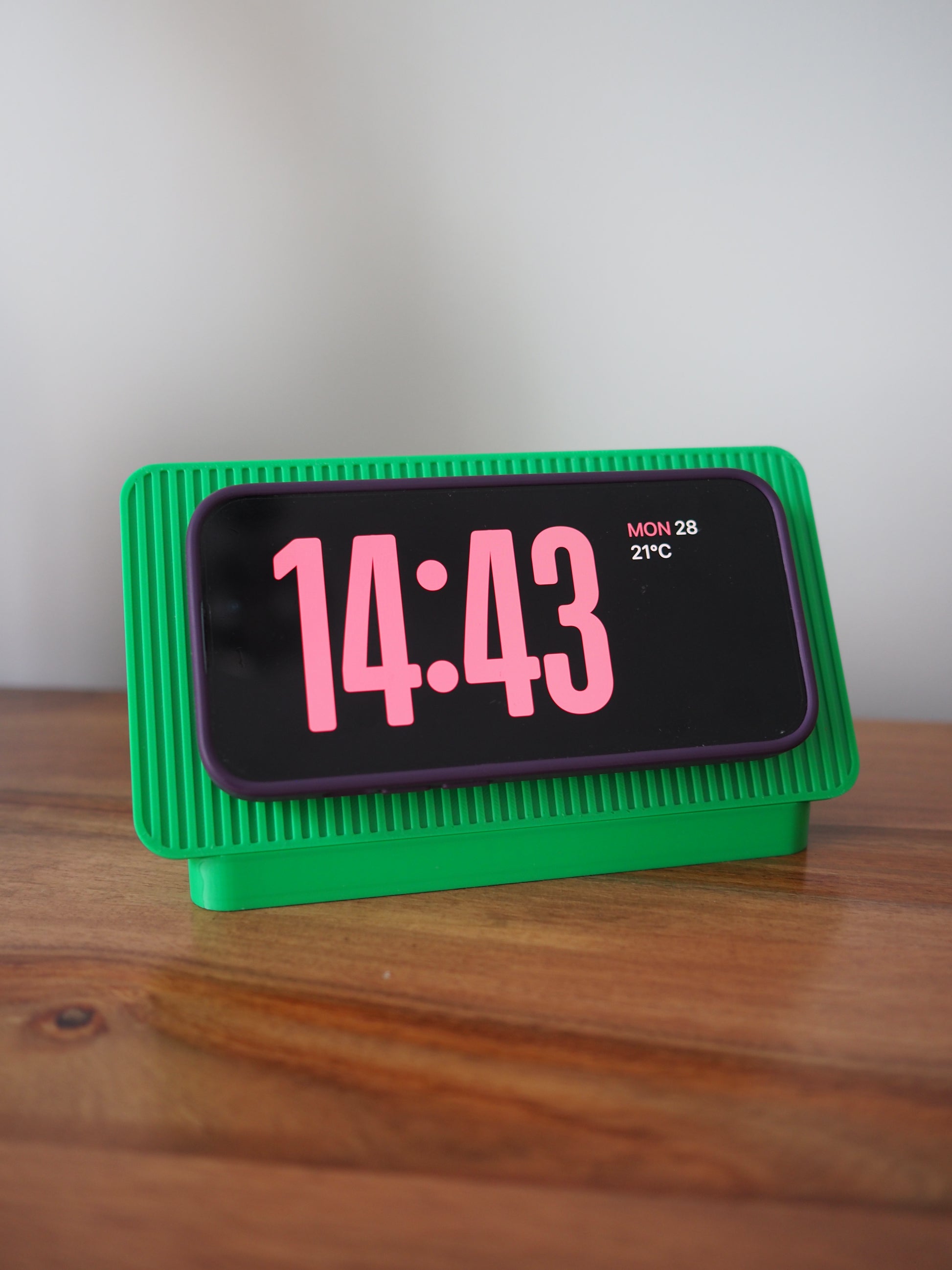 Green Alarm Clock iPhone MagSafe Landscape Charging Stand
