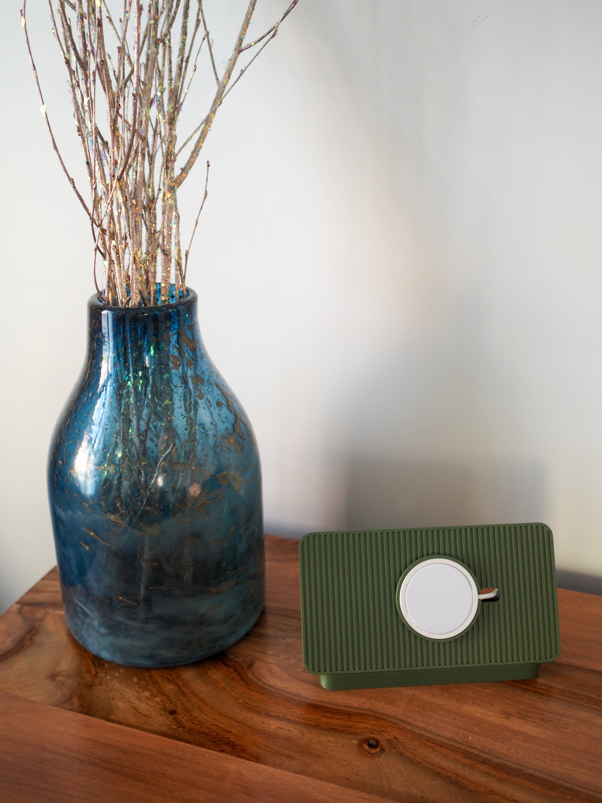 Olive Green Alarm Clock iPhone MagSafe Landscape Charging Stand